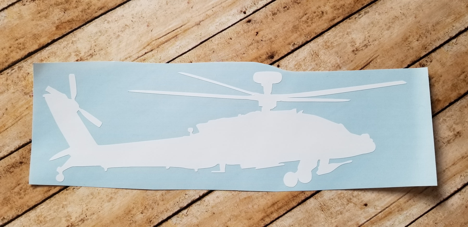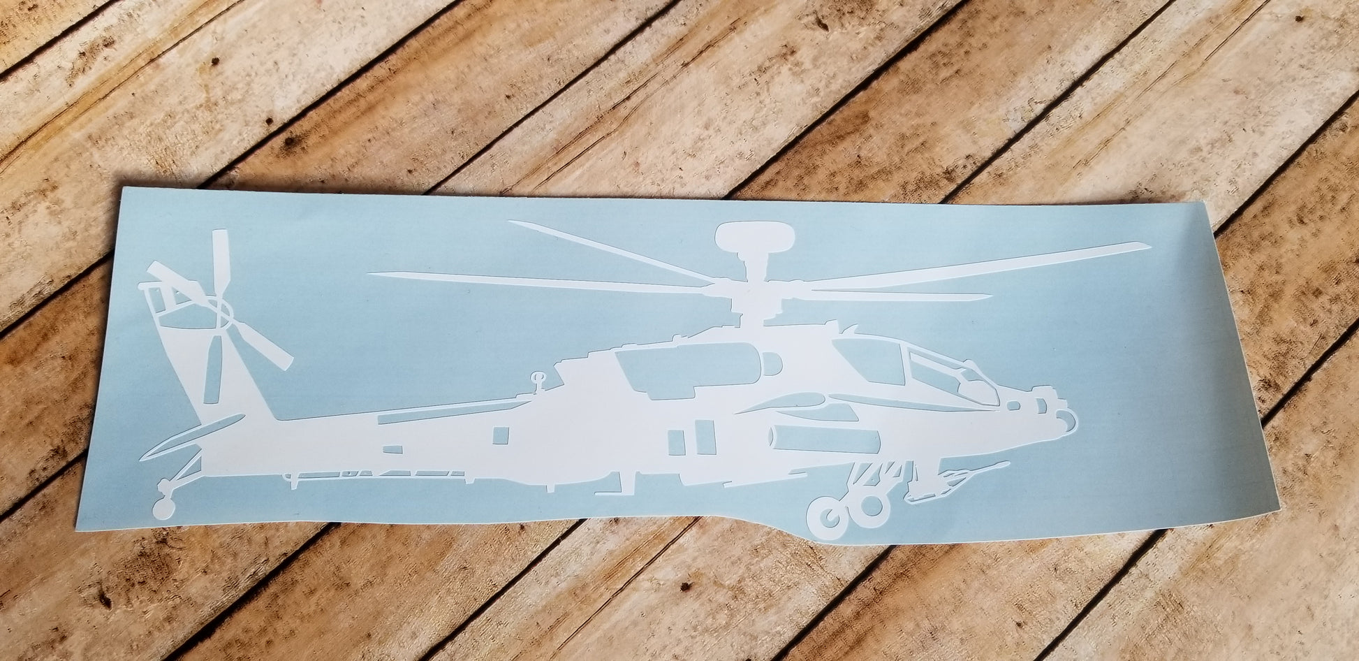 Our AH-64 vinyl decals are made from the highest quality vinyl available. Choose between a "Detailed" or "Plain" silhouette.