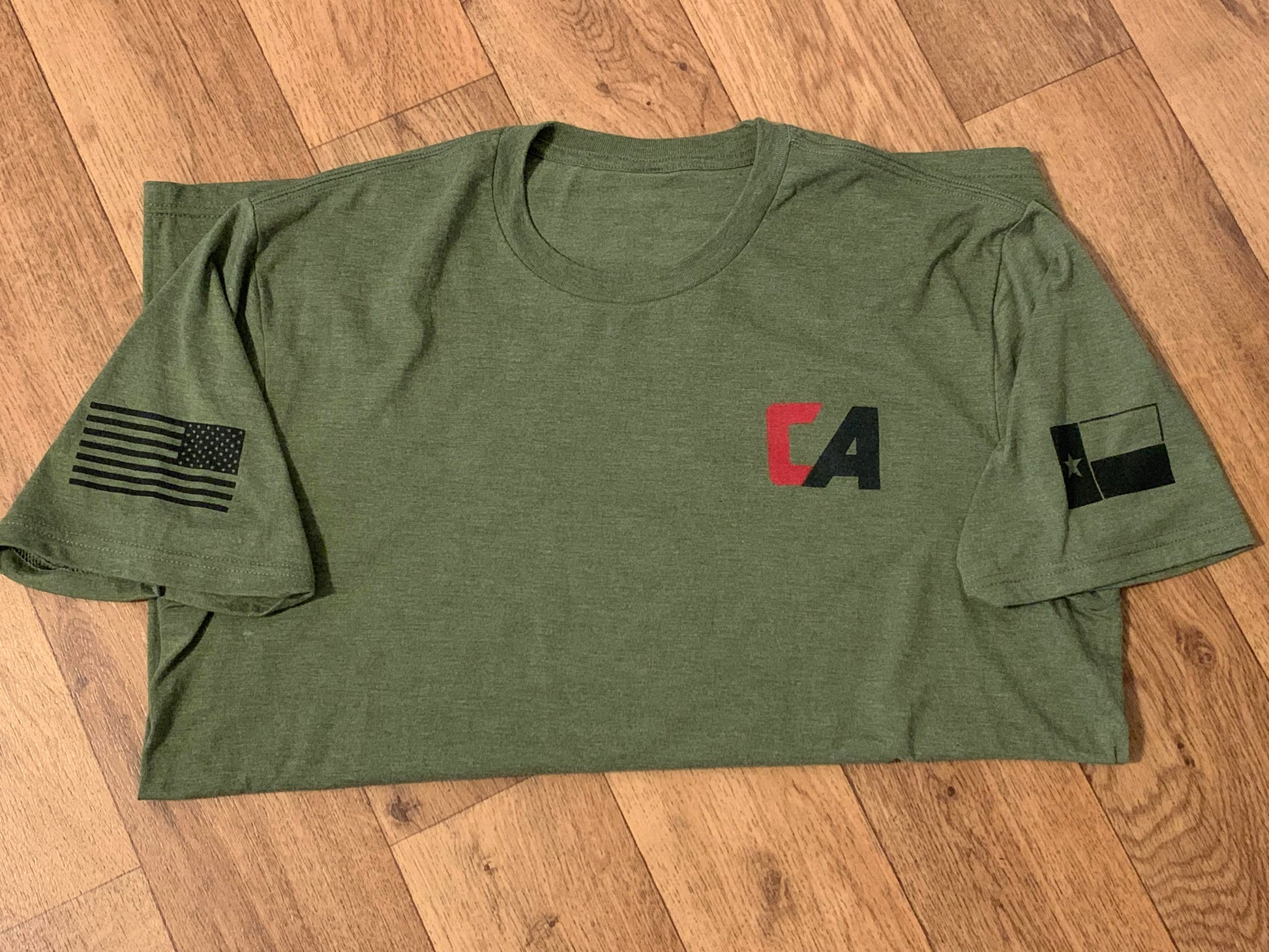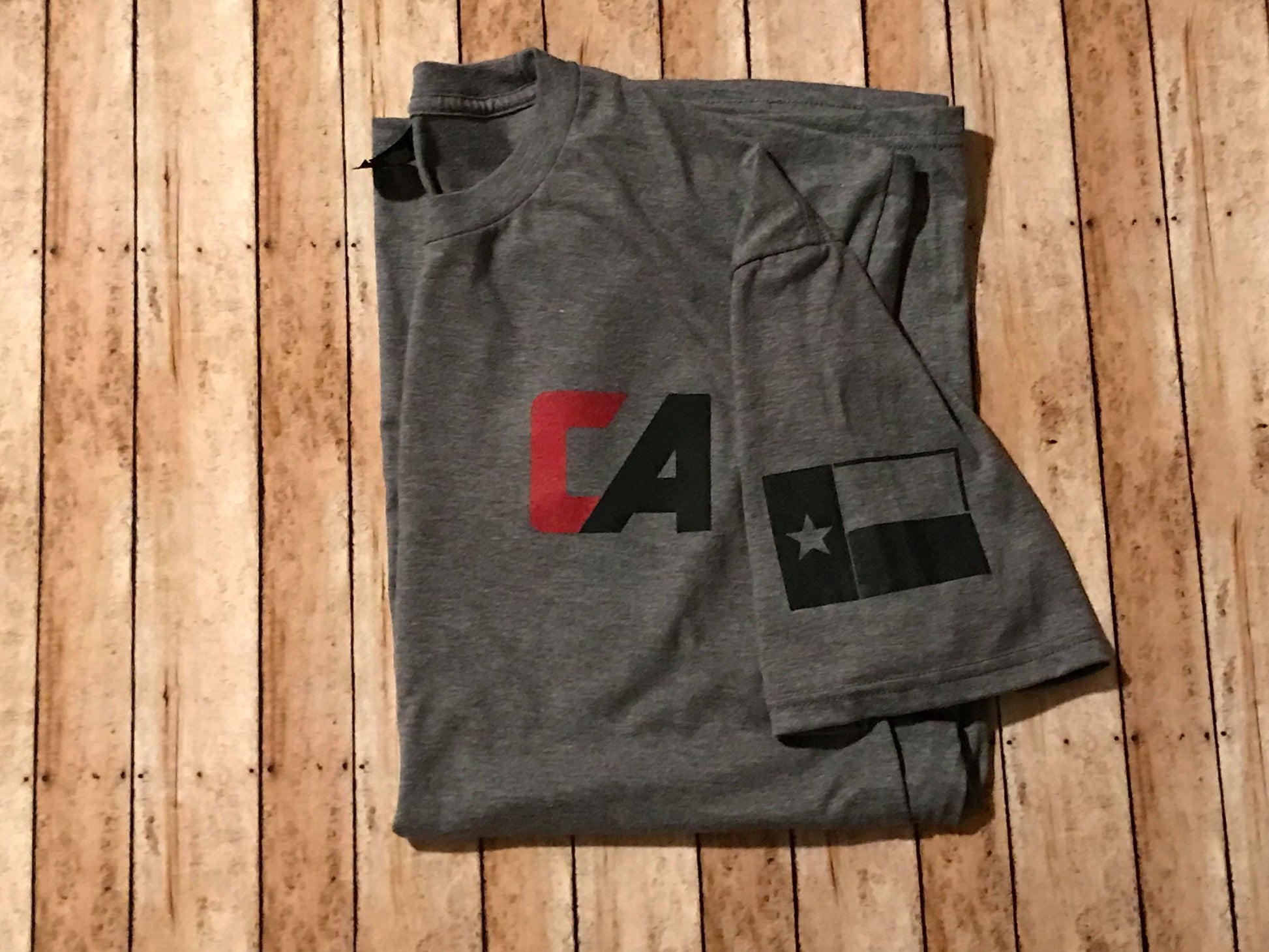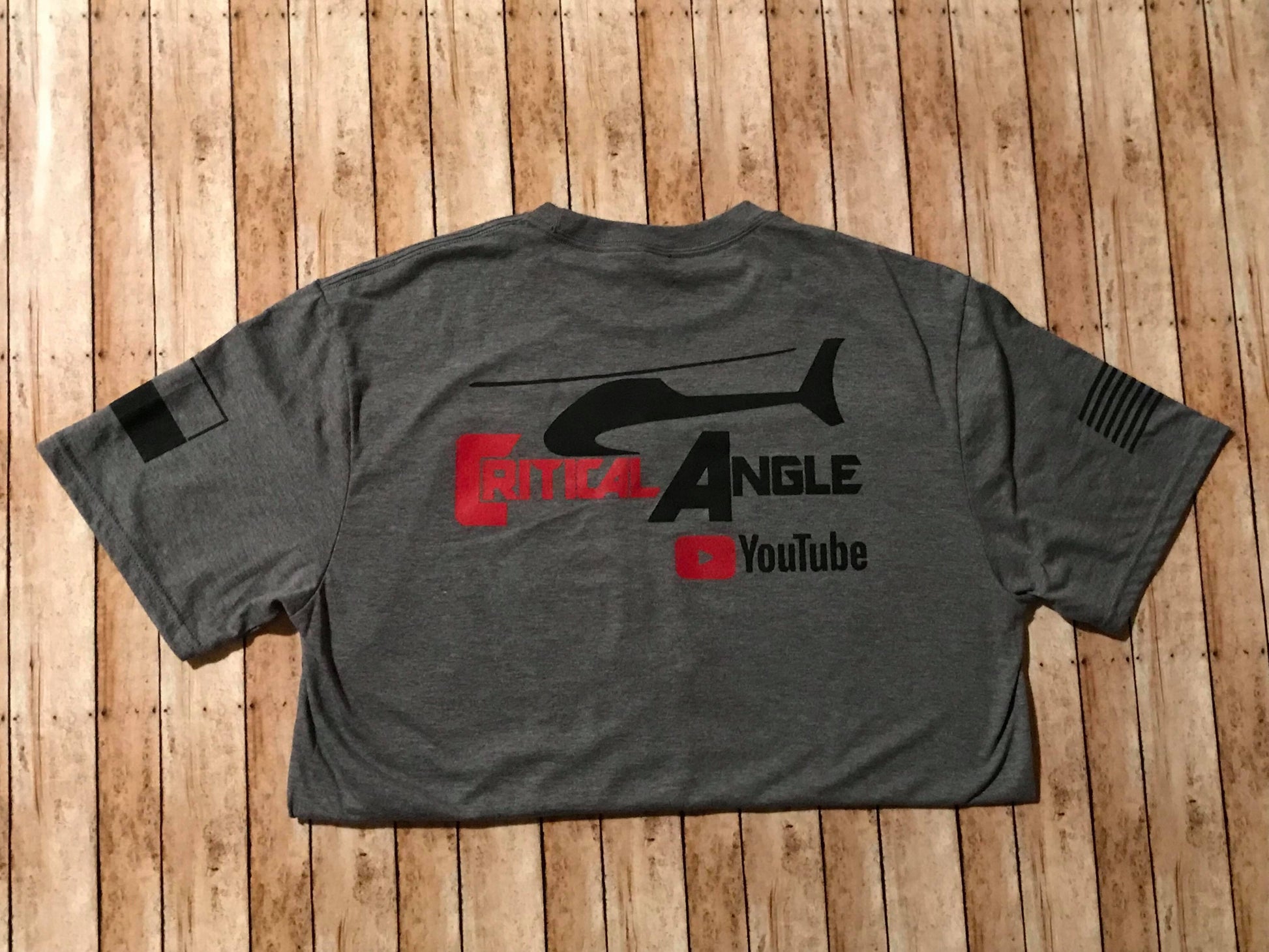 Critical Angle tees! These shirts are made of a tri-blend fabric consisting of 50% polyester, 25% combed ring-spun cotton, and 25% rayon. They're super soft, you'll love it!